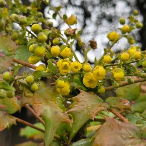 ヒイラギナンテン(柊南天)メギ科メギ属 別名「トウナンテン」 原産地は中国(台湾やヒマラヤ周辺含む 散歩道にヒイラギナンテンのお花が咲いてきました。 紅葉🍁した葉っぱも綺麗です。 和名は葉がナンテンのように複葉で、ヒイラギのようにとげのあることや、果実のつき方がナンテンに似ることに由来しています。 🏷 8日は葉っぱ野発表 🏷 日曜ビタミンカラー♪