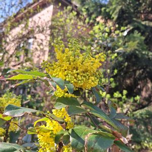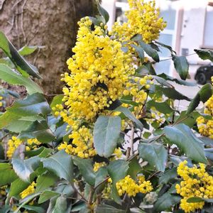 「ヒイラギナンテン」 庭隅のヒイラギナンテンが咲き始めました。 🏷黄金色の金曜日 🏷咲き始めのお花たち 🏷きんきら金曜日