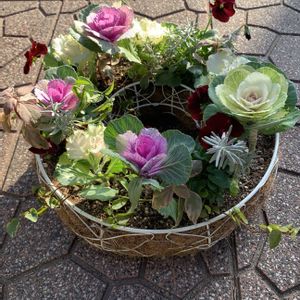 ハボタンの寄せ植えを作りました🤗 待機苗やっつけ隊出動で 使い切りましたꕀ⋆👍 クリスマス🎄終わったら お正月ピック付けて 玄関に置こうかな🤭🎍🌅🎍