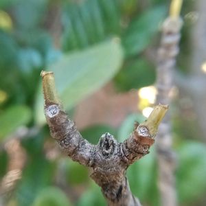 ❄クイズ冬芽葉痕❄ 1⃣ 手を上げてガオーッ 2⃣ 緑の帽子を頭から被ってます。 3️⃣ 葉っぱがでてきてました。 5️⃣ 6~7月に白いお花が咲きます。 よい香りがするということで、春のジンチョウゲ、秋のキンモクセイとともに「三大香木」と呼ばれます。 12月に赤く実がつき、きんとんやおこわ、たくあん漬けなど様々な料理の天然着色料として使われます。 答えは4文字 あとの方の為に〇〇でお答えください。 🏷 木曜日は木
