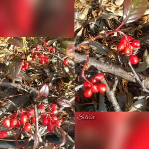 1/18 (日) ☆。.:*・゜ ①②❤️🌳コトネアスター🌳❤️ コトネアスター 学名✿Cotoneaster その他の名前✿ベニシタン ※バラ科 ※シャリントウ属 ③🌳❤️💛梔子💛❤️🌳クチナシ ④⑤❤️💜💙💚パンジービオラ💚💙💜❤️ 1/18付📷📱公園広場🏞にて❤️💜💙💚