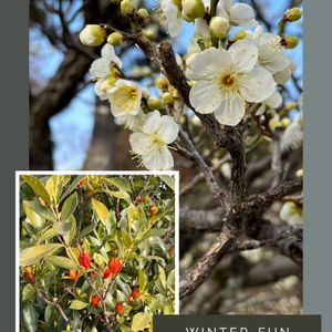 今、京都に来ています😅 昨日の智積院の梅と梔子の実です。 京都は最強寒波の影響で、雪がチラチラ舞っています❣️