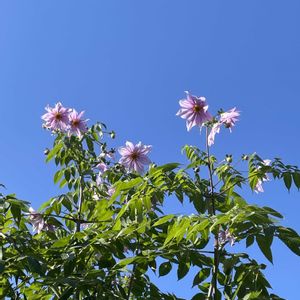 今日見かけた皇帝ダリア 青空に映えてました🩷 クチナシ? 🏷️木曜日は桃色 朝のうちは抜けるような青空 だったけど徐々に雲が広がり すっかり曇り空に☁️ お天気下り坂… 古傷が痛むはずだわ💦