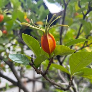 クチナシの実が出来ていました。 夏に白い花🤍が咲き、花後に果実ができます💕 熟すとオレンジ色🧡になります🎶😃