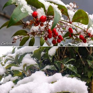 2/8 (日) 🌨 ①🌳❤️南天❤️🌳ナンテン 🌳金木犀🌳 キンモクセイ ②③🤍💛🌿水仙🌿💛🤍スイセン ④🤍🌿スイートアリッサム🌿🤍 ⑤🌳🌿蘇鉄🌿🌳ソテツ 2/8付📷📱🤍花壇、庭木🌳🌿❄の日