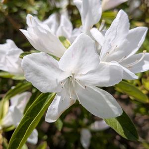 白色ツツジの花が満開に なりました! 金木犀の新葉🌱も赤く 色づいて元気もらえます💪