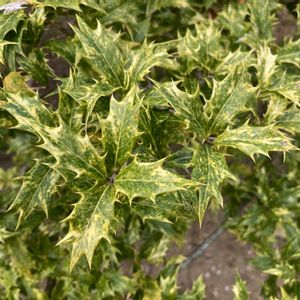 今日のお花🌿ヒイラギ♡ クリーム 黄 白 緑 の 斑が 混じりあった キレイな葉っぱ🌿.∘ ②成長 のんびりなのかな そんなに生長した気がしない〜^^;