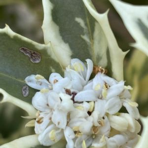 柊の白い小花が咲いています 普通の柊はとても優しい香りがしていますが、斑入りの方は微かに香ります
