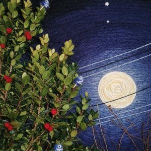 今日のお花🌿.∘ヒイラギ🌿.∘ 🌝満月スノームーンとコラボ 毛糸アートです🌿🌕 月の上に星✩.*˚木星と土星💫⭐︎1、2月は接近し大きく見えるそうですよ✨ 2️⃣19時pic現物📸 柊10cmの苗から4年で3mくらいに成長🌳 花ꕤ*.゚咲いたことないです💦 葉っぱ🌿上の方は丸みありトゲトゲしくないです🌱 斑入りは咲いたけど★星になりました🥲︎ 3️⃣AI 節分ふうにお願いしたら👹✰҉҈҉҈҉҈👹🫘🐟 鬼、豆🥜、イワシの頭入りました😊 4️⃣アップ🔎すると🌕月、電線は毛糸、赤い実🔴柊🌿🐟はフェルトになってます。 5️⃣昨日ひなたちゃんの足、文字は消しゴムマジックで花友さんに消してもらいました(⑉•ᴗ•⑉)Thanks❤︎"