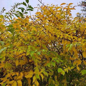 本州西部や四国、九州、中国中部に分布する木。高さ6~8mで、4~5月に黄緑色の花を咲かせ、冬には果実