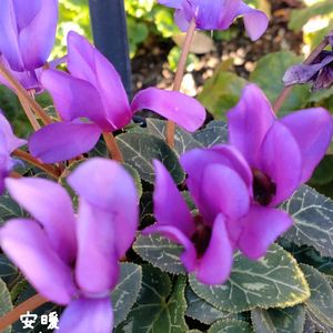 久々の穏やかな空☀ 数日ぶりに水やりしました🚿 今日のお花 シクラメン 1 ブルーのドラゴン💙 2 ホワイト🤍 3 ピンク💗 思い思いの色で咲いています🎵