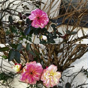 おはようございます😃 今日は、ハッピーバレンタインですね💝今年のバレンタインデー💝も、大切な人へのギフト🎁や自分にご褒美、日頃の感謝を伝える甘く🍫特別な一日ですね🫶😁 チョコ🍫と素敵な💓時間をお過ごしくださいね🤗 🏷️今日のお花 🌹バラ🌹 ①バラ🌹 可愛い💕バラが咲いてました☺️ ②コラージュ 左上、紅梅 右上、サザンカ 左下、ロウバイ 右下、モクレン ちょっと中道に、ピンクの花を見つけ近寄ってみると、紅梅で、その横にサザンカの花が咲き、後ろを向くと、種のカラがついたロウバイの花、脇にモクレンの蕾がありました 😊近くでこんなに花が見れた🤭 ③ツタバウンラン 小さな花が咲いてました😄 ④ナンテンの葉 赤く紅葉してました☺️ ①〜④散歩道にて❣️ ⑤朧月 葉挿しと言うか,落ちた葉を放置してたら,寒くても可愛い💕芽が🌱出てました😊 (私の庭にて❣️) 🏷️石の日🪨 🏷️青空っ子 🏷️毎月13日と14日は葉挿しの日 🏷️土曜日はお空の発表会 🏷️土曜日は紫の花 参加します。