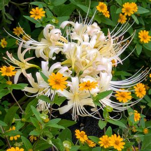 花散歩で✨ 🤍🟡💚🤍🩷💚🟢💚🟣💜♪ 1️⃣今日のお花✨ ヒガンバナ と メランポジューム 2️⃣木蓮 綺麗に咲いていました🩷 今ですか…? 3️⃣シラカシのドングリ 小さな秋み〜つけた! 早く大きな秋よこい💖 4️⃣藪蘭 の時期…よく見かけるようになりまし た👀 5️⃣ルエリア こんなに綺麗に咲いているのを見るの は初めまして💜 今日も 笑顔😄で 過ごせますように💐 おやすみの皆さま そうではない皆さまも良い日になりますように🍀