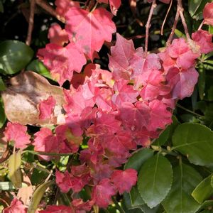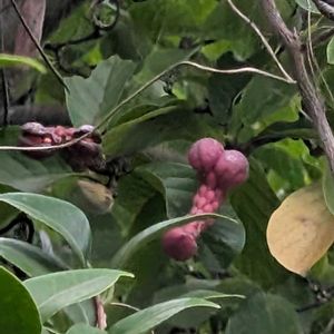 秋の訪れ🍂庭 ①コキアが赤く色付きました❤️去年より大きな🧹が作れそうです😊 ②紫木蓮の実 ③ギボウシ ④アマドコロ ⑤斑入りタニウツギ 朝晩は部屋の暖房をオンにする様になりました😅
