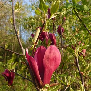 庭にいつの間にか生えて、育ったシモクレン(紫木蓮)。昨年は1輪でしたが、今年はたくさん花をつけています。 おそらく、鳥からの贈り物。