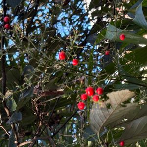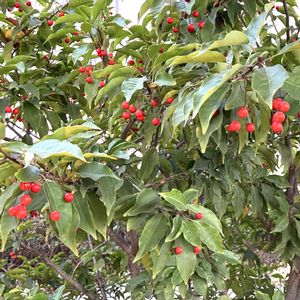 今年も、青々とした葉のなかで、ソヨゴの赤い実を見つけました①② モチノキ科 モチノキ属 常緑小高木 別名はフクラシバ 波状の葉がそよそよと風に揺れることから命名された ようです 6月頃に目立たない白い小さな花をつける 今年も花を見過ごしてしまいました 「冬青」は、冬でも葉が青々と茂っている常緑樹のことだそうです 他に赤い実を付ける木がそばに生えていました ③ナンテン 真っ赤な実がたわわに成っていました もうすぐヒヨドリの餌食になってしまうのかな? ④クチナシの実 クチナシの実は味や香りがほとんどないため、食材や料理の風味を損ねることなく色付けすることができます もうすぐお正月ですね 栗きんとん作りに欠かせないですね 🏷️木曜日は木 🏷️木曜日の木々たち 🏷️木曜日は気(木)になる実