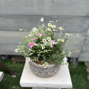 本日2度目失礼します😅 曇ってきました。 植え付けたばかりですが、 頂き物のエリゲロンさん一つ 咲いてくれました♪ ああ、とても可愛い🩷キュート🩷 画像2 復活期待薄のネモフィラの ハイズ・ブルーと 蕾をつけてるオーストラリアン ブルーベル❣️ ハイズちゃん、なんとか種取りまで 頑張ってくれないかなぁー😭 画像3 ディスコロールさんを押しやる オルレア。 たった一つの種から、育って 御立派てすが、ちょっと可哀想な ディスコ・ロール。オルレアを 少しカットしてあげましたよー。 画像4 最初に咲いた一株は矮性的だった アスターのアイスブルー。 後から咲いてるのはのっぽさん。笑 最初の株から種取りできるか?と 待機してますが、まだまだかなぁ❓ 画像5 切り取ったオルレアをバラと一緒に 凄くゴージャスさが増した😊 お花って素敵💓 オルレアさんもレギュラー入りかも。
