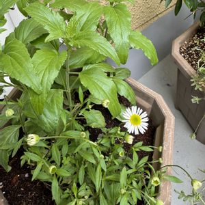 おはようございます。 スッキリしない空模様の大阪。 天使ガブリエル様、2人目降臨。 今春は、あと一つ開花で終わりです。 お花も葉っぱも大きく 育ったのだけど、何せ、幼苗から 咲かせながらの育苗で、 植え替え時も根っこ半分くらいしか張ってなかったので、まぁ、 仕方ない。 昨日届いたエリゲロンさん 冬越えしたブルーサルビアの 隣に一株植え付けました。 大きなーれ!😊🙏