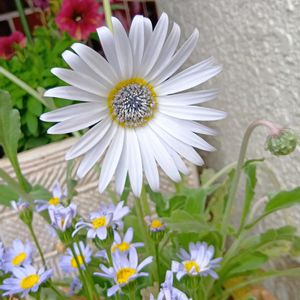 本日2度目失礼します😅 曇ってきました。 植え付けたばかりですが、 頂き物のエリゲロンさん一つ 咲いてくれました♪ ああ、とても可愛い🩷キュート🩷 画像2 復活期待薄のネモフィラの ハイズ・ブルーと 蕾をつけてるオーストラリアン ブルーベル❣️ ハイズちゃん、なんとか種取りまで 頑張ってくれないかなぁー😭 画像3 ディスコロールさんを押しやる オルレア。 たった一つの種から、育って 御立派てすが、ちょっと可哀想な ディスコ・ロール。オルレアを 少しカットしてあげましたよー。 画像4 最初に咲いた一株は矮性的だった アスターのアイスブルー。 後から咲いてるのはのっぽさん。笑 最初の株から種取りできるか?と 待機してますが、まだまだかなぁ❓ 画像5 切り取ったオルレアをバラと一緒に 凄くゴージャスさが増した😊 お花って素敵💓 オルレアさんもレギュラー入りかも。