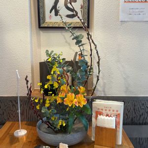 こんばんは🙂↕️ 今日、8:30〜12:30 星乃珈琲店のバイトのシフトが入っていたのに、すっかり忘れていました〜😅 しかも気づいたのは、30分程前で私は明日の8:30〜12:30だと思って、今日は洗濯したり家事をして過ごしてましたよ〜 明日、星乃珈琲店の業務用LINEで皆さんに謝罪しないといけませんね😓 昨日、環境アレルギーの化学物質過敏症の予約受診日で日野市のクリニック🏥に行きました〜 検査は、まずまずの結果でした🤔 そしてクリニック🏥が終わって、いつものように高幡不動へ行きました〜 高幡不動駅から京王線に乗り換えて聖蹟桜ヶ丘駅に出て京王百貨店🏬に行きました〜京王百貨店🏬にあるサンリオショップにて、子ども食堂に来ている発達障害のみっちゃんの誕生日プレゼント🎁を購入❣️ サンリオのクロミちゃんが好きなので、クロミちゃんのグッズを選んで来ました🎵 買い物が終わったら高幡不動にに戻り、開運そば屋に入ってランチ😋 開運そば屋の生け花ですお花💘