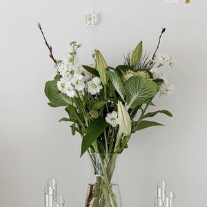 松の内も終わり、お花たちもお正月から通常モードへ ①しめ飾りをかけていた玄関ドアには葉牡丹のリース でもこれは失敗作 11月に買った苗の茎が長すぎて、根を切り挿し芽にしたんです。だからなくなったものや、葉っぱが枯れてきて一回り小さくなったものも多く、バランスが悪い… まぁ落ちてこないだけいいか! いかにも素人が作った感じ。 あ、素人だった🤣 ②お正月のお花も大きな花瓶から小さな花瓶へ生け直し ③④さらに小さくして、フローティングフラワーにしたものも こうしてどんどん小さくして長く楽しめるのも生花の醍醐味ですね