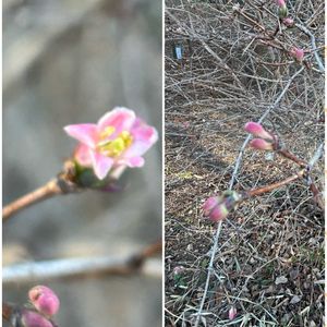 ㊗️成人の日 ご本人様、ご家族様おめでとうございます 1️⃣ウグイスカグラ 鶯神楽 3輪ほど咲いていました🌸 蕾はたくさん❣️ 2️⃣コウバイ 紅梅 早咲きですね🥰 ちょっと遠いけどなんとか📱パチリ 3️⃣ネコヤナギ 猫柳 もう帽子🧢を外したのもある! 4️⃣サンシュユ 山茱萸 まだ赤い実が目立っています 5️⃣コブシ 辛夷 まだ木についている実 風もなく穏やかだったので里山散歩 大雪❄️大雨の地方の方ご安全に🙏🏻