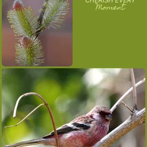 ネコヤナギが咲き始めた公園で、ベニマシコ♂に会いました❤️ 初めましての鳥さんです💕 今日は、月に1度の 🏷️あ.にまるの日 1枚目〜