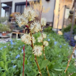 ピンクネコヤナギ 雨が降って、晴れてまた雨が降って…… 日ごとに暖かくなり、陽の光が眩しくなってきた(✪▽✪) 友人が裏庭に置いていった植木鉢からも、無事に枝が伸び、「柳の枝に猫がいる」🩷 つぼみが膨らんで、ふかふかの毛の間から赤い葯が見えてきて、そうかこれは雄花だったか🔴 あっという間に葯は破れて黄色く、そして黒ずんでいく⭕🟡◎ 花が終わるとすぐに葉が動き出すことだろう♬💚