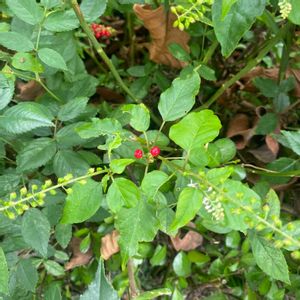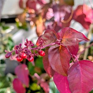 ジュズサンゴの葉がきれいに紅葉しました✨ 赤い実🔴も残ってます💕 2️⃣ 8/8の様子 ヤマゴボウ科 リヴァナ属 花期 6〜10月 原産地 北米南部から南米