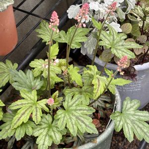 先日のヒューケラ🌿 新葉も展開してきたけど…花穂が数日で気温が上がってグングン伸びーる😅 植え替えいつしようか迷い処…🤔 メープルファッジが待ってるよ―💛