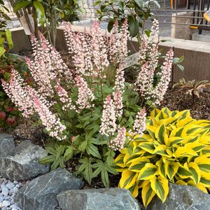ずっとヒューケラだと思ってたフレッシュグリーンがヒューケレラだと知りました。どうりで見事な開花っぷり。隣のホスタとの葉色のコントラストがいい感じです。隠れてますが、フレッシュグリーンの裏に今春ノーザンエクスポージャーアンバー(オレンジっぽいヒューケラ)を植えました。名前が長くて覚えられないので正式名称を書いておきます。 ホスタはグランドプライズ。 ホスタの裏に赤い万両紅孔雀を地植え。 2枚目は秋に買って植え付けたヒューケラ。白花が咲くのかと思ってましたが、真っ赤なお花も素晴らしい。こちらはブラックフォレストケーキ。 3枚目はヤマアジサイ。トカラの空。今年は一回り大きくなって大量の花芽が上がってきました。 色んな植物に花芽が待機していて楽しみがたくさんです。