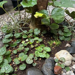 ユキノシタ の葉がモリモリ🌳 ランナーが沢山出ています 名前忘れてしまった シダ の葉も大きく成長🌿𓂃◌𓈒𓐍 (ヒロハヤブソテツかも) "プレミアム サフィニア " も少し広がってきました👆 切り花にした "キララ" お家の中でも楽しんでいます⟡.·✮.*・゚.‥⟡