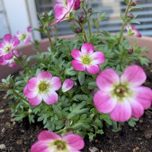 🌿クモマグサ🌸🪴 中々花数が増えないけど、 鮮やかなピンク🩷 は庭先を明るくしてくれます🎶 明日からの三連休、気温が上がる様ですね! 素敵な金曜の夜をお過ごしください 🌸🌿🌸🌿🎶🎶
