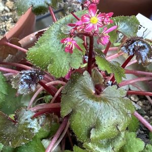 ダイモンジソウ 皆さんの投稿を見てどうしても育てたくなりました。 道の駅の隅に追いやられ、お値打ち品を見つけたので我が家に。 殆ど種になりかけています。 火山岩の鉢に苔(ずり落ちる😅)を着けたらいい感じ。 種が飛んで生えて来るように周りの工夫しないとね。 ②後にまだ少し咲いてる花 暑さと、🌞に弱そうです。