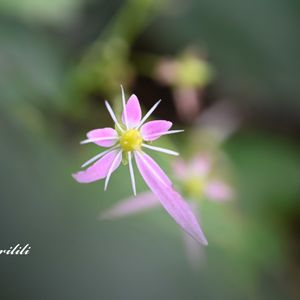 岩場や渓谷の岩上などに生えるダイモンジソウ。5枚の花びらのうち、2枚が長くなっているので、漢字の「大」の字に見えることからこの名がつきました。ダイモン...