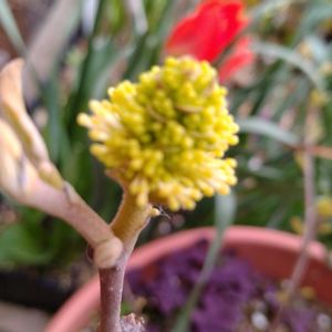 おはようございます😊 大文字草 ユキノシタ科 家の小さい山野草コーナーに赤い花が一つ🫢 間違えたのかな‼️ 2枚目は側に《爪紅台湾梅花カラマツ》小さい花が咲き乱れています💕 🏷️真っ赤な火曜日 🏷️可憐な火曜日 🏷️艶やかな華曜日の花