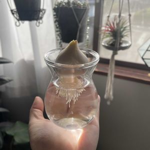 チューリップ🌷発根していました👀 暗いところに置いてから2週間経つか経たないくらいでした🤲🏻 この子はピンクのお花が咲く予定です🙂↕️
