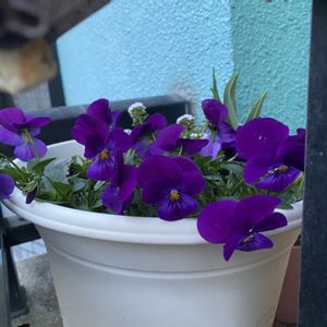 ラ、ヴィオラ 紫がきれいで夕方🌆にパチリ アリッサムと弱弱チューリップの球根達と!