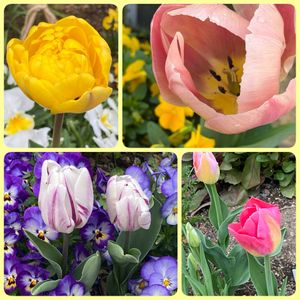 お出かけ先で見つけた春色のお花🌷とハツユキカズラ🩷葉牡丹さんたち🥰 今週末から暖かくなるようですね♪🎶 🏷️春色チュ!チューリップ♡ 🏷️2026チューリップリレー 🏷️2のつく日は斑入りの日 🏷️斑入り見つけ隊♪
