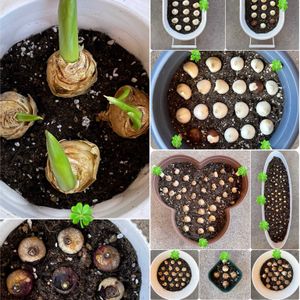 🌷チューリップとヒヤシンス🪻 球根🧅を植えました。 🌷紫雲 と 八重咲き白 ヒヤシンスは紫・青・白🪻 水栽培用しかなかったな〜 しかも一部芽がたくさん出ちゃってるけど… まぁ大丈夫でしょ⸜( ´ ꒳ ` )⸝ 春に咲くのが楽しみです〜🌷🪻