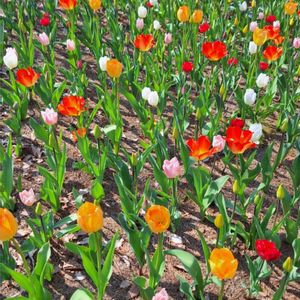 GS今日のお花 ♡チューリップ♡ 毎年、チューリップの咲く春が楽しみ💕💕💕 1️⃣2️⃣3️⃣は過去pic 去年、植え込んだたくさんの球根の出番を楽しみにしてたんです。 ところが… 4️⃣暮れから、夜毎、掘り起こされる被害に💦 多分、齧歯類(野ネズミ?)の仕業? AIに聞いたり、園芸店の人に聞いたり…でも、イタチごっこ、 こんな事、初めて…猛暑の影響? 腹が立って、情けなくて…💦 ムスカリ・チヨノドクサ・プスキニアなどを含め、65球植え込んで、去年の古い球根も入れると80球位、どれ位、生き延びてくれてるかしら? 水仙は毒があるのを本能で知ってるのでしょう、触りもしない。 ぷっくり美味しいのか?チューリップから齧られてます。 5️⃣リベンジで、 チューリップが無いのは寂しいので、フリンジ咲の真っ赤❤️な芽出し球根を追加購入、2階のベランダに置きました😅 ※ハクビシンかも?…と言う情報あり。 河川敷や線路敷には、何らかんだ小動物がいるんだって💦 線路、近いと言えば近いからなぁ🤔