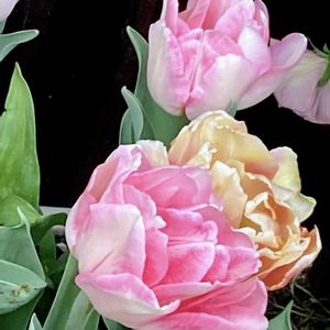 こんばんは😊🌃 今日のお花 🌷チューリップ🌷 ①② 「フォックストロット」 昨年近所で咲いてました。 ③④大阪駅LUCUA屋上(11月) ⑤花博記念公園鶴見緑地にてネモフィラの中⸜🩵🌷︎⸝💜 5枚あります🌿 見てくださいね😊🎶💕︎