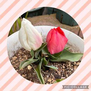 おはようございます(*^^*) 昨日、この春お初のチューリップちゃんが 咲きました〜🌷 ・・・正しくは、咲いていました〜です🤣 手前の、もりもりになったビオラに埋もれてて、 気付かなかったのよ〜💧 覗いたら、より、可愛い〜(左上) 98