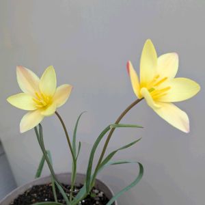 原種 チューリップ💛🧡 花友さんから苗を頂きました🌿 咲いて感激💞とても可愛い〜🌷 来年も何とか咲かせたいな〜