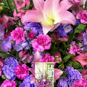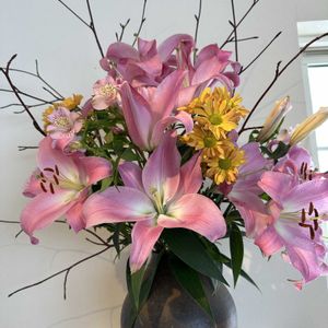 コデマリ🤍 ラナンキュラス🧡 カーネーション🩷 ユリ💜 ネコヤナギ🤎 スイトピー💜 ゴージャス🥰💐