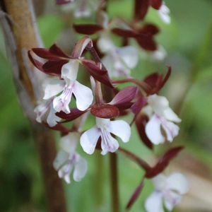 『謙虚』『誠実』『謙虚な恋』。他のランに比べて落ち着いた花色で、控えめな印象を与えることにちなむといわれています。野生種は、環境省のレッドリストで準絶滅危惧(NT)に指定されていますが、交雑しやすい性質を生かして、現在ではたくさんの園芸品種が作られています。
