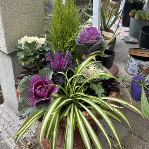 1、寄せ植え冬の定番達 2、オオタニワタリ(ダイソー) 3、ガウラ(寒いのに咲いた〜)