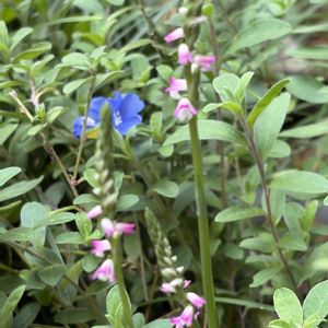 今日は風がないぞ😆🎵 午後はそこそこ暖かいかも?? 1 暮れに見切り品コーナーで見つけたビオラ✨ この色の出方😍😍 どうして見切られていたのか不思議😆 店員さんありがとう💕 2 表花壇に植えっぱなし数年のプルモナリア💙 今年もいつの間にか咲いていました。 3 先週種まきしたフィセリア🌱 4 生存確認のネジバナの子株。 元気そうでなにより🎶