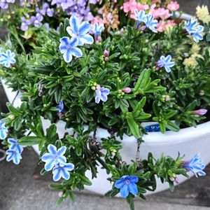ミヤマホタルカズラが咲き始めました。1輪だけ青1色の花が。 グリーンアイスとアイビーの寄せ植えに一目惚れして、うちも植え替えました。 毎年こぼれ種であちこちに勝手に咲いてくれるビオラ。ネジバナの鉢に。 ベビーサンローズは、冬ハゲたけど今すごく元気!