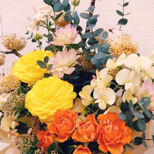暖かくなってきたと思ったら、またまた寒い今日この頃。 でも3月です🥰 ちょっと気分が上がります⤴️ 今日のアレンジは黄色と薄いピンクの2種のラナンキュラスが綺麗です😊
